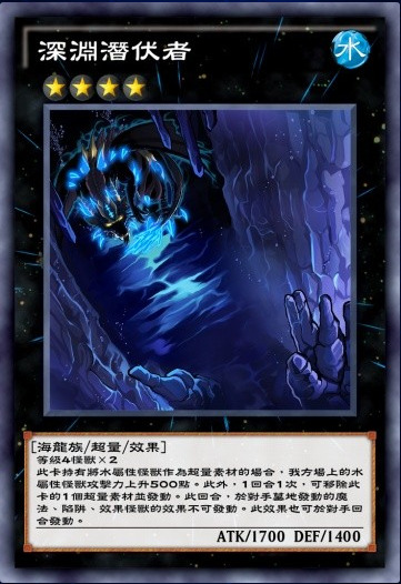 强力泛用R4,俗称下水道。②效果是一个二速墓地封印效果,而且是三封(魔陷怪兽效果),先手压制力极强。但是打点非常捉急,算上①效果的500点攻击力buff也只有2200。
