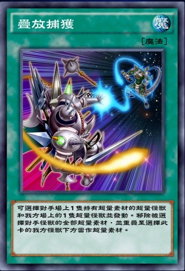 一卡R4的我我我怪兽,②效果后面有一个自肃,这个回合自己不能作除只用「我我我」怪兽为素材的XYZ召唤以外的特殊召唤。这个自肃其实意思就是这回合你只能进行超量召唤,但是可以叠泛用超量怪的。③效果还能抽1卡,能赚卡就赚卡,何乐而不为呢。