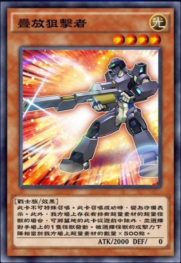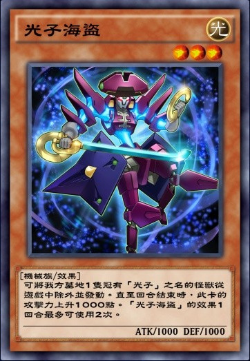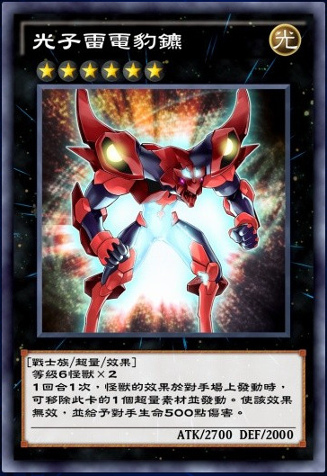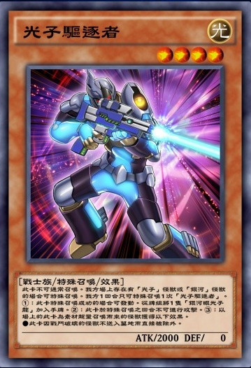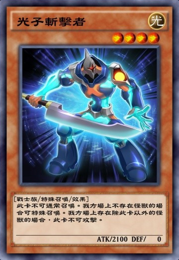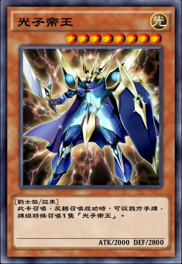光子卡组核心下级之一。不能通召,但是特召条件非常简单,只要自己场上没有怪兽就可以特召,本家非常重要的特召点。至于攻击的限制其实不太重要,因为一般出来都是用来叠R4的。