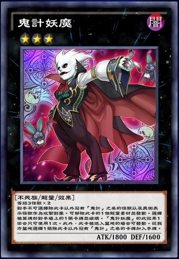 鬼计,好久不见的字段,不出新卡我都忘了这是个超量卡组了。本家终端之一吧,不算核心,自带一个嘲讽效果还有去除超量素材炸1盖卡的效果。最后还有一个遗言回收的效果,还不错。