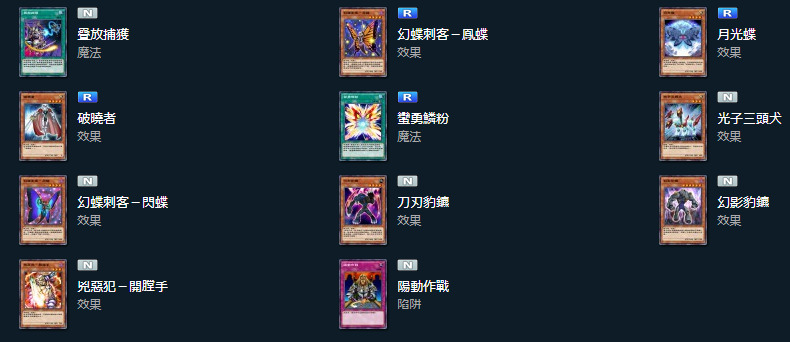 不带幻蝶刺客字段,但是超量素材要求幻蝶刺客的本家4星。效果是一个全场怪兽回手效果,包括自己。且不说这给的效果伤害少的可怜,辛苦亏牌做一个R4然后再把自己吹了,这不是蠢爆了吗?