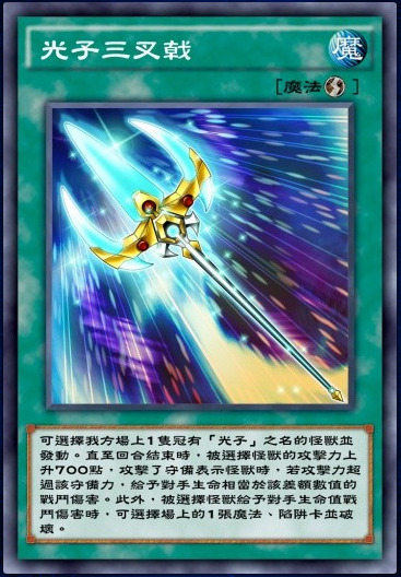 光子卡组专属速攻魔法,提攻击力,穿透,给予伤害炸一魔陷。有用吗?没有,你啥抗性都不提供,我带个圣枪多实在啊。