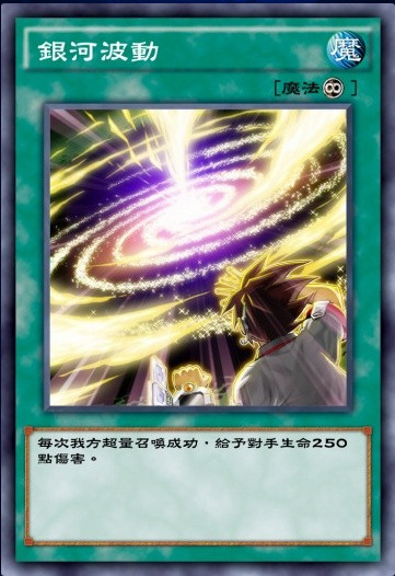 此卡带【银河】字段,和【银河旋风】一样。鸡肋卡。超量怪兽出来了越早消灭是越好,根本没功夫等到其素材全部被拿掉。