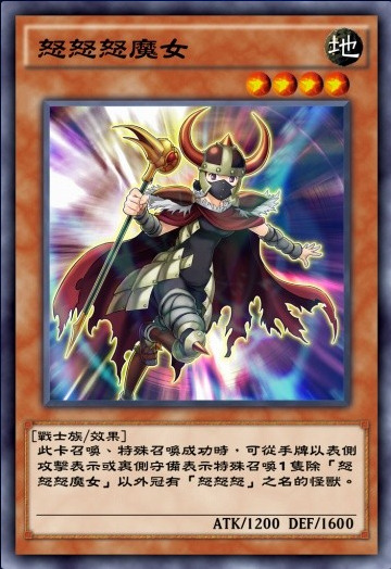 魔女这效果也算是一卡R4了,就是亏手牌。至于里侧守备表示特招一只【怒怒怒】怪兽,基本就是为了特召【怒怒怒斗笠剑士】,要不然多亏场面啊。