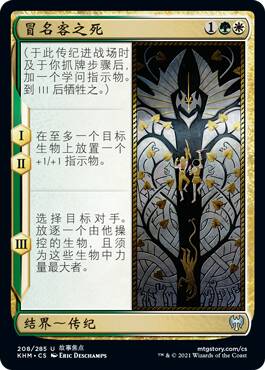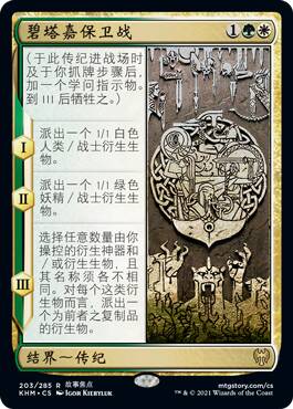 前两个阶段都可以把两个战斗阶段和对手的烧吸引到你某个生物身上,本系列没有什么黑白色天生不灭的生物,这个异能到底强不强还要看场面局势,在你大举进攻或者要换掉对手某些大生物时可能会比较强。而第三个阶段掘坟挺赚,只是时效性差了点。