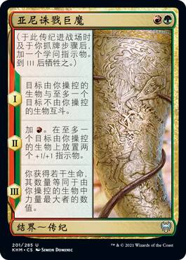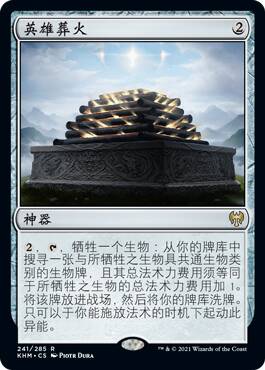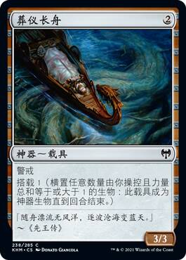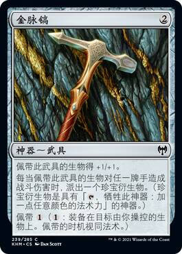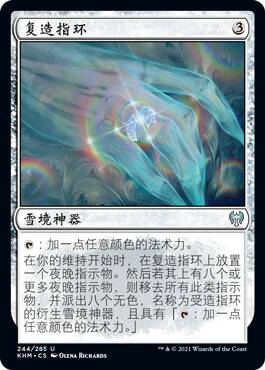 这张牌挺逗,带灵气武具的生物死了回手我能理解,但是为什么是衍生物+1+1呢,难道就是用来配合新的几张活化武具的嘛,而且你既然场上有这张牌了,对手也不会傻到不管他去解别的带武具生物呀,总的来说不是很强。