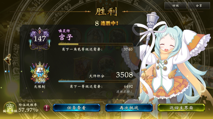 战绩:我使用这套牌在国服m段取得八连胜。仅用一晚就从零分上到3500分段。