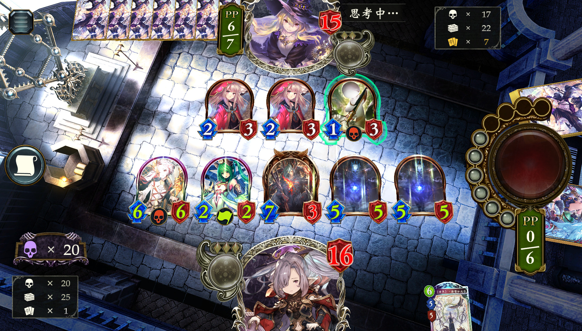 前期争夺场面。寻找不太亏节奏的时机过牌。例如在有多余费用的情况下使用百鬼夜行,第1/3回合使用不死游行后在第2/3回合使用灵魂向导,在后手第3回合或先手第4回合使用王墓之骸等。