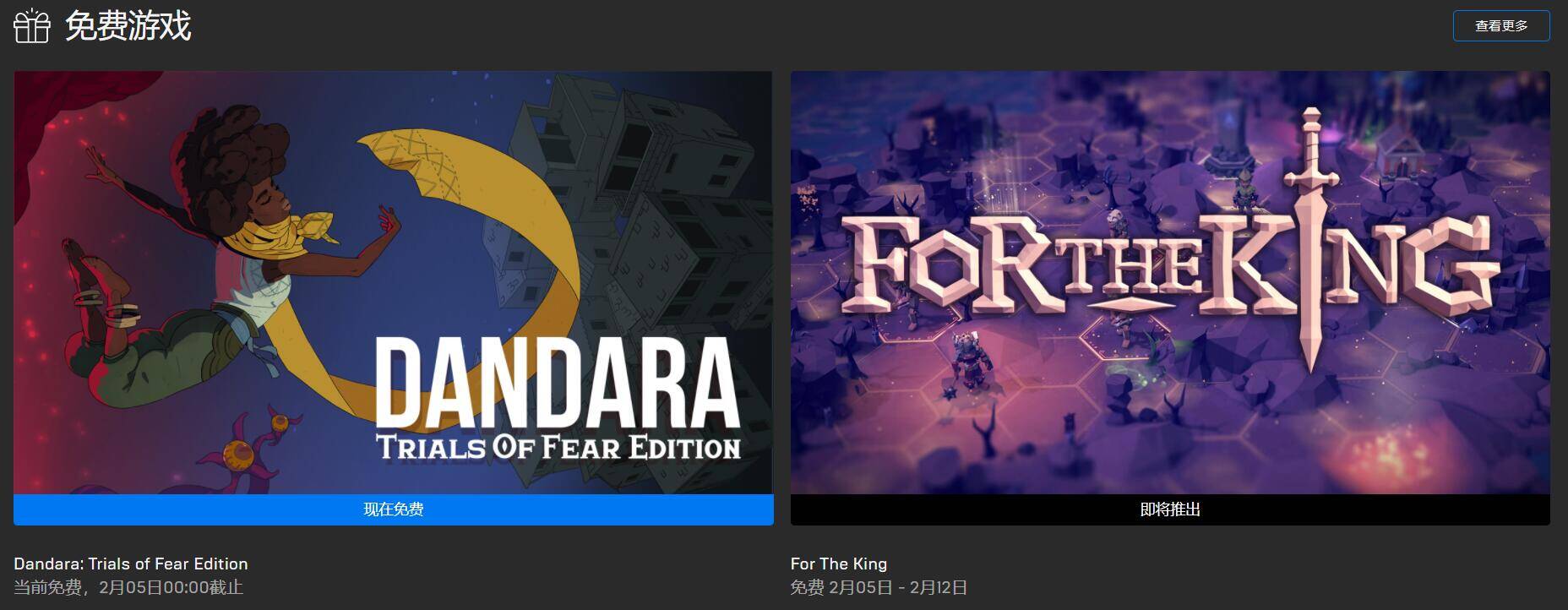 本周Epic商城送出2D平台动作游戏《丹达拉:恐惧试炼》,此次领取活动截止到今年2月5日。而下周Epic将赠送结合战略、回合制战斗和Roguelike元素的游戏《为了国王》。