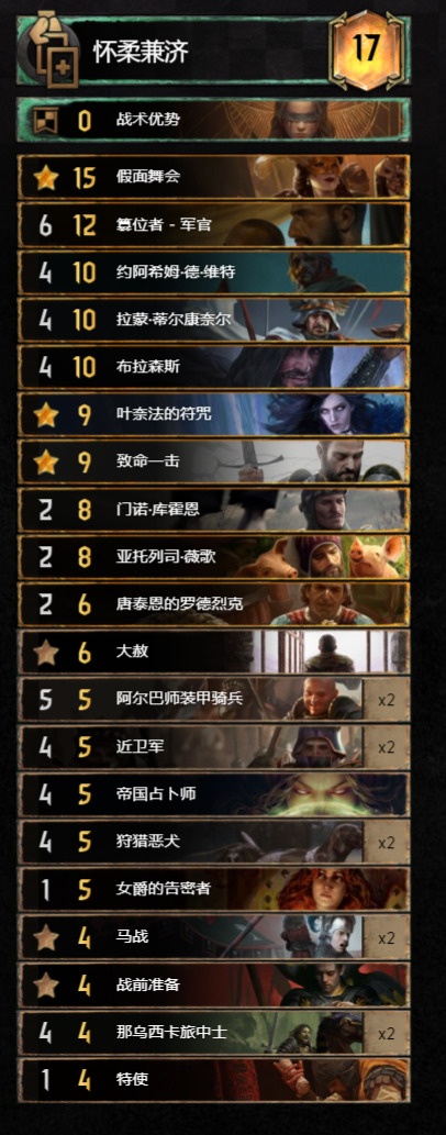 冠军的卡组,试网必须试试。这套群岛的话短局不行,没有恩约夫配合冲锋直接解单位的那样的combo,但是补刀能力极强,控制棒棒,短局拉胯。