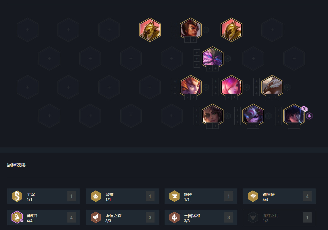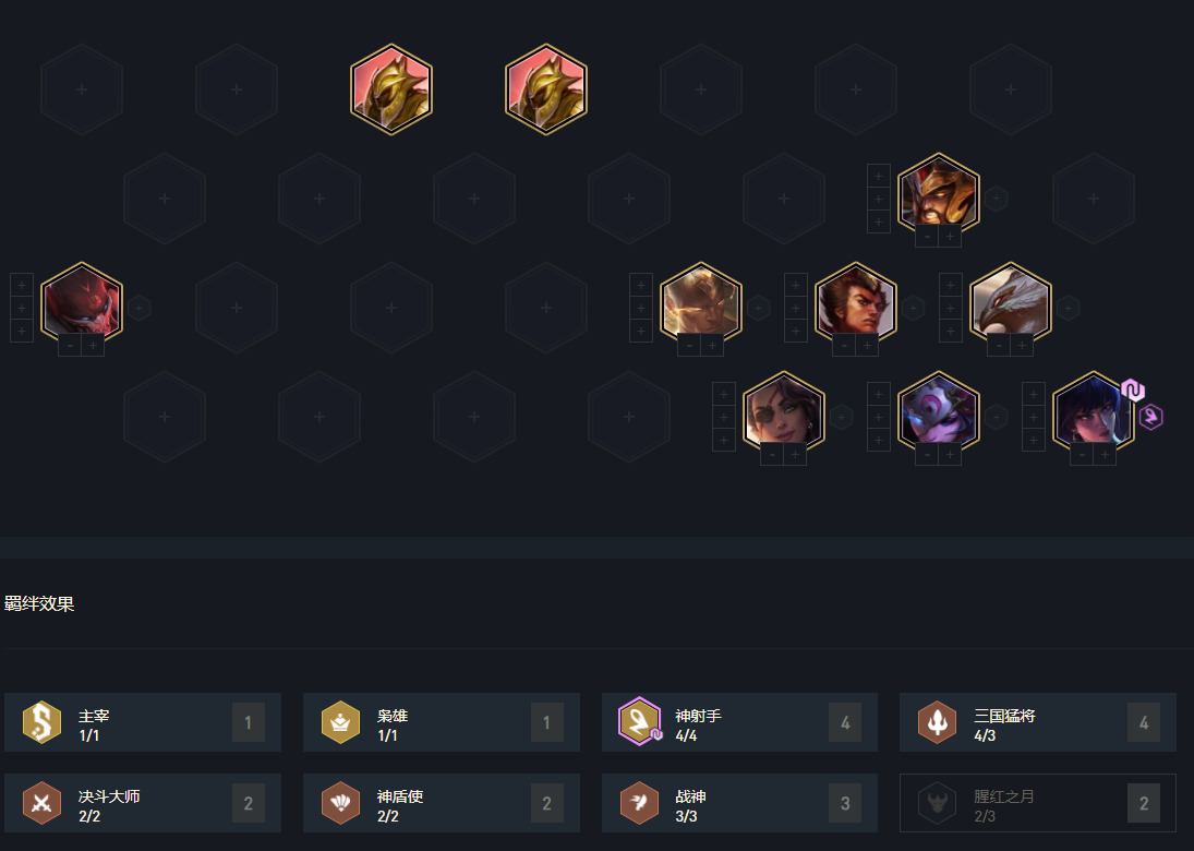 2阶段阵容过度建议3三国+2神射+2斗/2重/2神盾,主要看白嫖的棋子情况。
