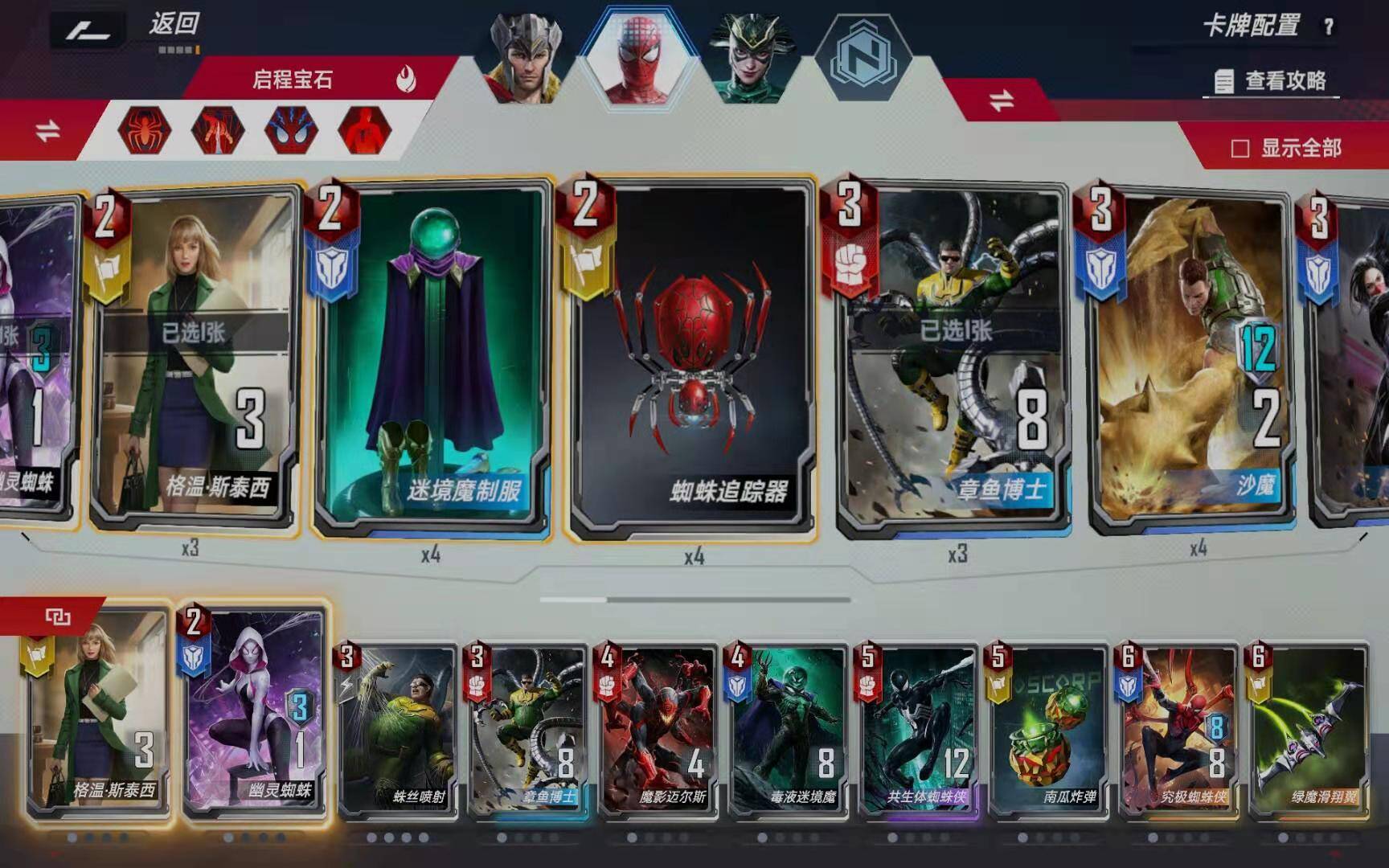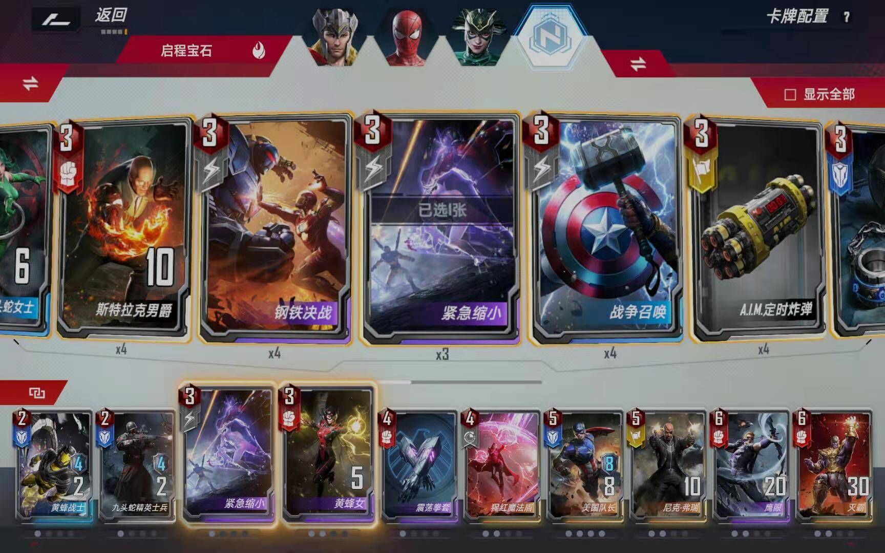 三张灭霸在任何情况下都是必杀的,第一张灭霸消灭6个随从(12除以2),第二张灭霸消灭3个随从(6除以2),第三个灭霸消灭完除了灭霸之外的所有随从。要注意的是尽量把事件池九头蛇炸弹卖掉,否则对面事件池要是有幻象洛基,送给对面的九头蛇士兵也会变成九头蛇将军。