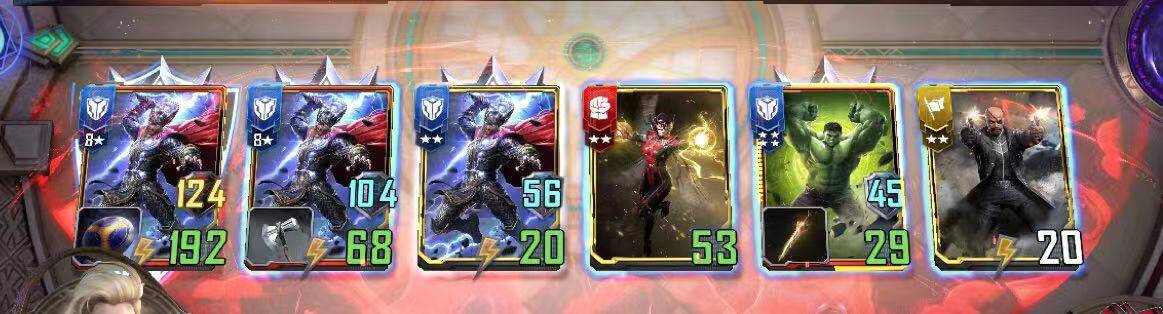 第一:本卡组最大的优势是经济,有的同学说都没有托尼,哪里来的经济呢?看我以往我的文章的朋友应该有印象,卤蛋尼克弗瑞是一张可以免费升星的卡,如果你抽到一张索尔,两张卤蛋,下一回合卤蛋把索尔升级为2星,为你节约5个宝石,再一个回合索尔升级为4星,为你节约15个宝石,如果再来一个回合,索尔变成了8级,那就不得了了,卤蛋三个回合内要帮你节约 8*5-5=35个宝石,这个效率可不是比托尼高太多了,并且四星托尼现在打出的难度非常大。而且卤蛋还可以不间断给你升级其他卡,这个卡组是一个越打越强的比凯旋强度高很多的卡组。