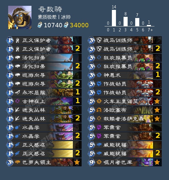 目前环境还在演化,并没有出现有绝对统治力的巫妖王。虽然环境中又重新出现了控制卡组,但总体节奏还是偏快。就全分段的大数据而言,奇数骑和奥秘法等传统列强虽然一卡不加,仍处于胜率榜前列。前者是因为卡组超强的稳定性,极高的下限以及对盗贼的克制,后者是因为设计师的偏爱,无脑超模专治一切花里胡哨。总的来说这次削弱是空前成功的,给人带来了很多惊喜,这是最好的时代,也是最坏的时代~