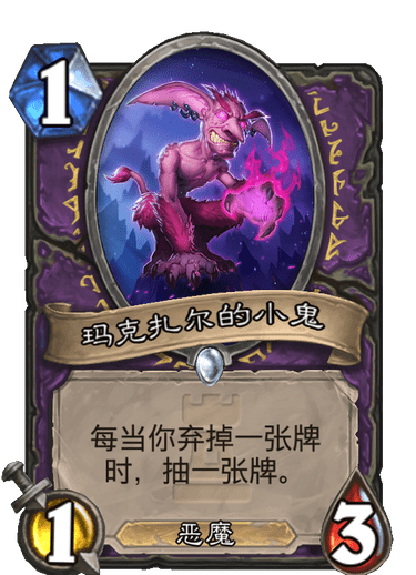 我会考虑玛克扎尔的小鬼、灵魂之火和邪恶低语这三张牌。作为外挂的弃牌体系,玛克扎尔的小鬼也能过牌,然后帮助你更快找到巨人和塞布。但是我实战的经验是玛克扎尔的小鬼很少能抽到牌,并不可靠,与赛车回火相比效果不佳。