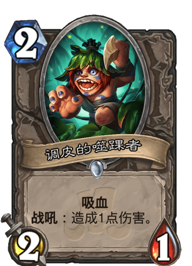调皮的噬踝者:这是一张针对牌,在对阵快攻时较为好用。除此之外,用这张牌战吼打自己脸,可以给血肉巨人一次减2费。