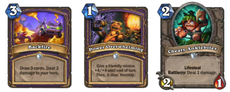 力量的代价:黑眼术中的绝妙卡牌。无论是用来提高四点斩杀线,或是仅用于随从交换,都可以很好的发挥作用。注意:调皮的噬踝者+力代+活化扫帚可以联动吸血,有时会非常有用。