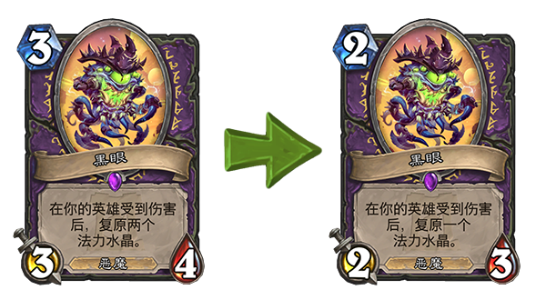 尽管黑眼在18.2补丁中被削弱,但依旧可玩,而且黑眼术仍然是当今狂野最强的卡组之一。唯一发生变化的是,新黑眼术并不像以前那样特别依赖黑眼,这使“黑眼术”的名称稍微有点过时,或许称其为“自残术”会更为合适。