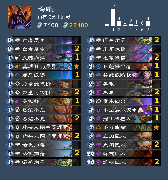 - 后手一费没有巡游向导或狗头人图书管理员,这种情况建议硬币抽一口。这听起来是很奇怪,但是这实际上是黑眼术后手硬币的最佳用法。这能加快前期游戏节奏,多一张牌,多减费一次巨人。