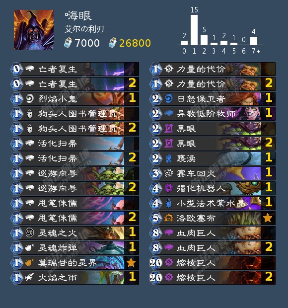 在我看来,在黑眼术中并没有位置可以放AOE法术,火焰之雨和亵渎并不适合黑眼术。因为黑眼术在游戏前期就充分有效的开始争夺场面控制权,而在第3~4回合后,AOE法术就基本失去了任何价值。