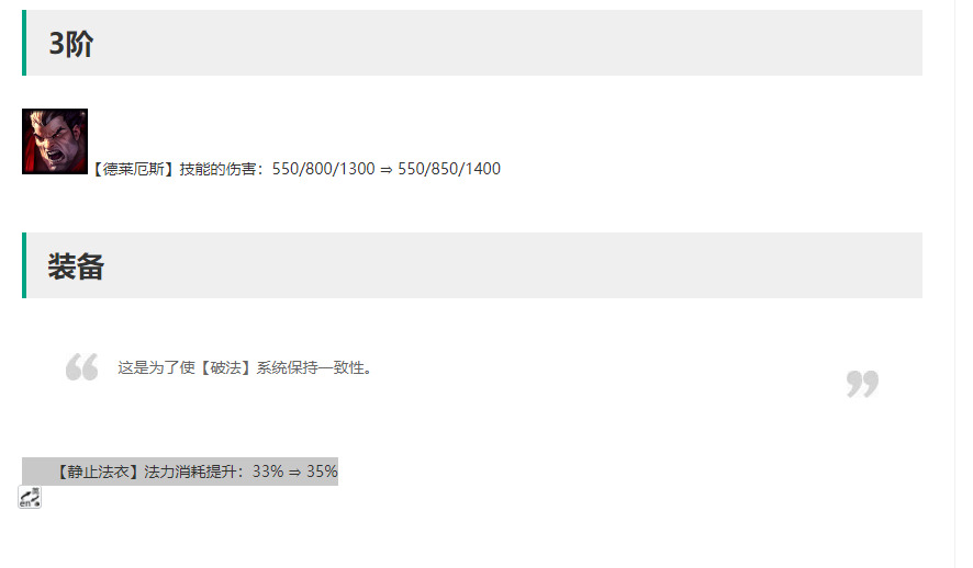 解读:法衣增强,蓝耗增加到35%。强度略微提升。