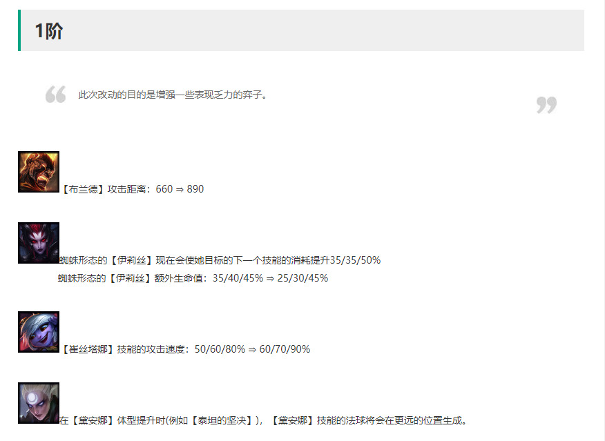 解读:小炮增强,小炮全等级技能攻速获得增强,3星更是达到90%,也就是说裸装三星小炮开技能后攻速能达到1.33/秒。在这个版本龙魂羁绊增强,小炮攻速又增强,献祭流小炮在这版本应该会有一战之力了。装备上两套出装方式一套就是电刀/羊刀、正义、正义/水银。;一套就是羊刀、鬼书、飓风经过在PBE测试强度均很高,特别是鬼书这套,简直就是之前赛季的斗枪,超级嗨。