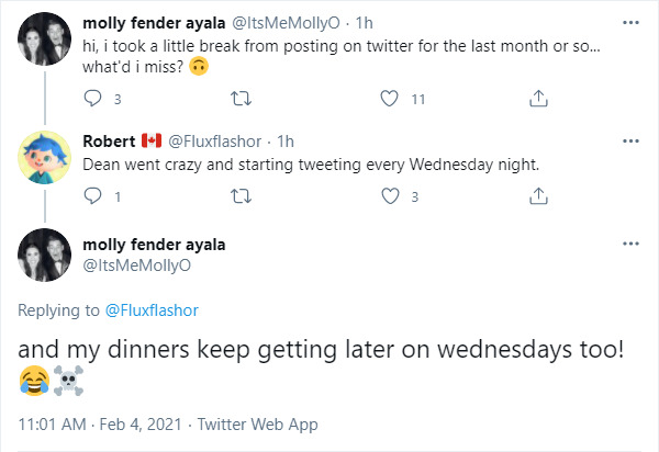 Molly(Iksar老婆):你还要不要一起吃晚饭看《苍穹浩瀚》了?