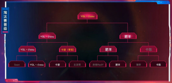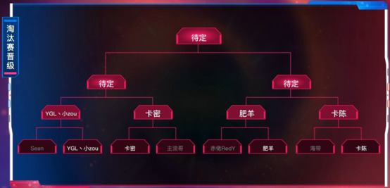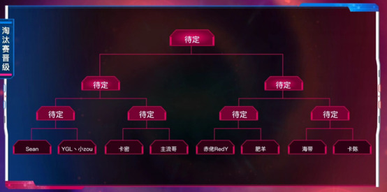水友赛结束后是淘汰赛的抽签环节。成功从小组赛中脱颖而出的8位参赛选手将会采用抽签的方式在淘汰赛阶段重新分组。最终8强赛的分组结果为:上半区,小zou对阵Sean,主流哥对阵卡密;下半区,肥羊对阵赤佬RedY,卡陈对阵海带。