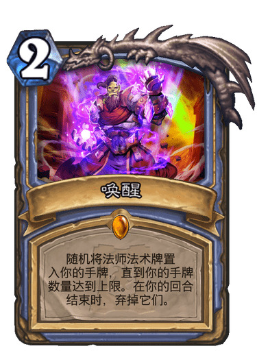 唤醒从1费砍到2费之后,唤醒的强度确实下降了不少,在面对快攻时这张卡很难产生像之前的奇迹了。因为费用对于奇迹法来说是非常苛刻的,特别是现在狂野这种超快的环境。但因为本卡组法术数量不够,火妖在斩杀回合可能无子弹可用,唤醒还是得带的。并且唤醒的无限讲故事能力,还是值得带的(曾经被别人满血0巨人斩了,唤醒四火球)。