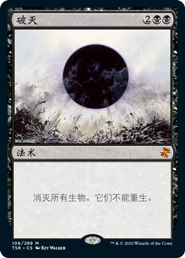 我的计划完美地成功了。颜色转移经典的万智牌卡牌让Bill理解我的意思,而破灭和被移除的白色记忆丧失则是让他点头的两张牌。在发现破灭能强力地推行这个想法之后,我坚持说服所有人让它成为官方网站上首张被预览的牌。在你当天点进DailyMTG.com的时候,你会看到神之愤怒在屏幕上形成,然后将正常的网站融化。它然后就变成了破灭。然后就像我对Bill做的一样,我用破灭推广了「另一个现实的现在」给全世界。