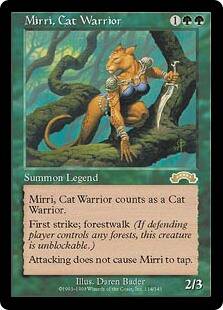 受诅咒的米丽显示的是她在变成吸血鬼之后的结果。她从原本的2/3变成了3/2。她保留了先攻,但将森林行者和警戒换成飞行和敏捷。她也获得了一个类似第一版中辛格氏吸血鬼的吸血鬼异能(虽然不完全一样)。