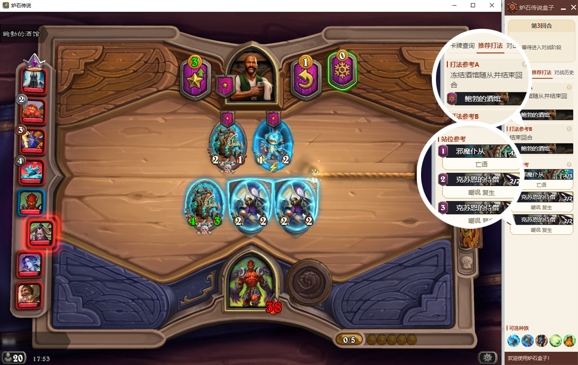 百闻不如一见,我第一时间录制了视频,环境是7100分,使用拉法姆完全根据插件的推荐打了一盘,手把手教我跳操,拿了第3,而且最后其实是我手速的问题,手上牌太多了来不及操作,费用没打满,但本身AI推荐的打法都没什么问题,真的必看!