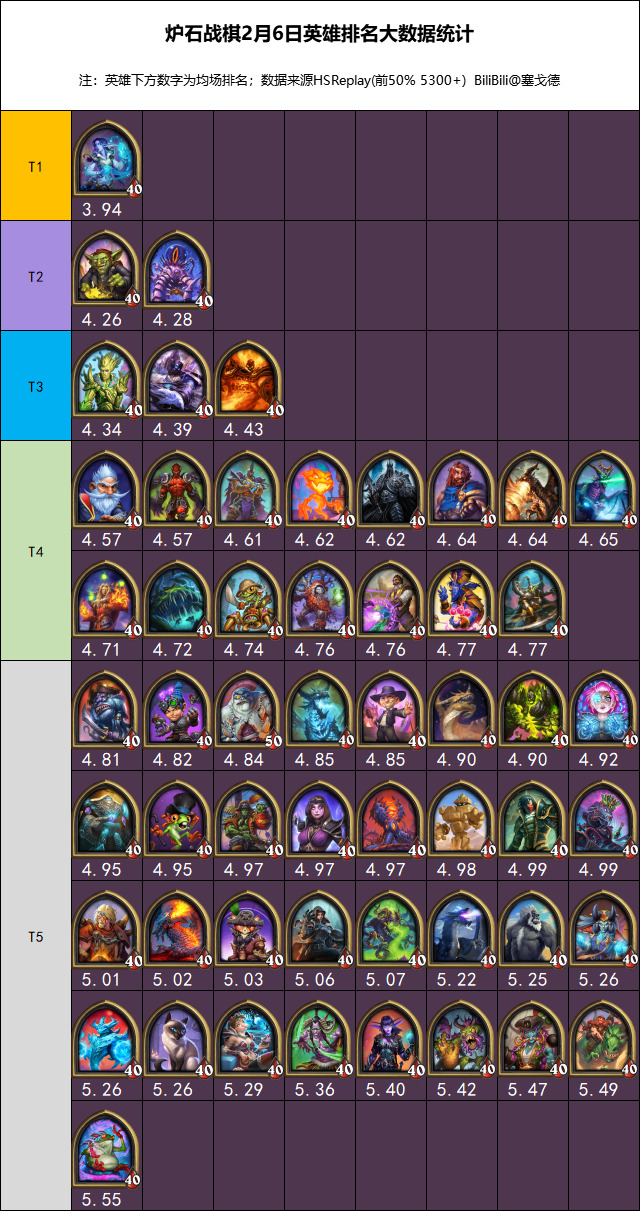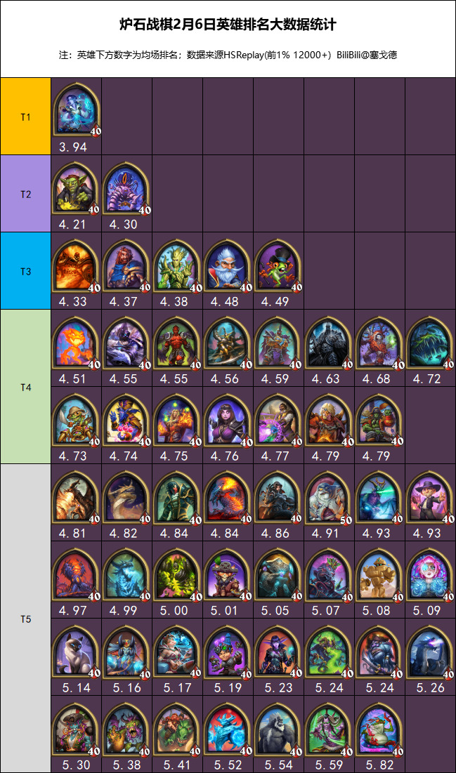 现在HSreplay不再把选取率低于3%的英雄归入数据不足了,所以高位局的排名略有变化: