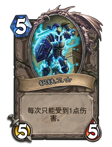 我们先打出莫尔葛工匠后打出钢铁卫士,苦修打钢铁卫士只会受到1点伤害