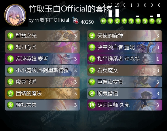 - 天使的旋律:携带的原因是本家的过牌法术浓度不足,增幅法必须要有一定的过牌法术浓度。副特效以及能配合宾森特只是添头。