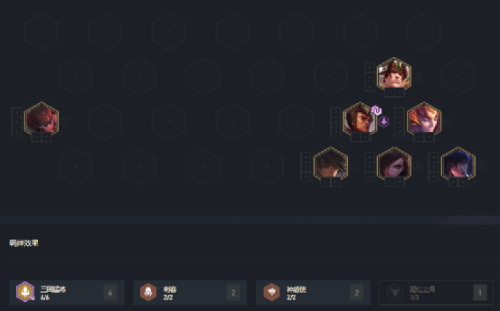 在3阶段如果是三国天选,可考虑凑6三国羁绊,6三国这时候比较强势,高血量与高法强在搭配神盾或射手羁绊很容易保证连胜,没有6三国也不要怕,继续拼多多,掉血也不会太多的。
