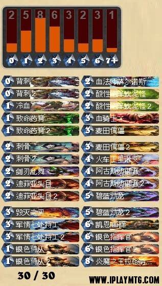迪菲亚头目的连击效果让你前期场面随从数量占优,中期配合碧蓝龙法伤+过牌打出法术伤害,后面火车王补刀