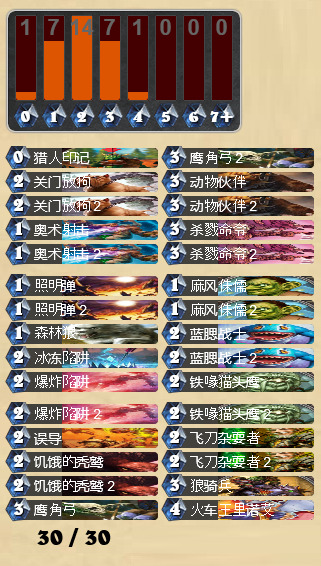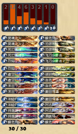 那时就依然这样了,AOE手段多奥金尼+环,炎术师+盾,但去除4攻仆从还是弱点,所以只能走上歧途。上面的牌表里可以改掉大工匠加入精神控制就对了。