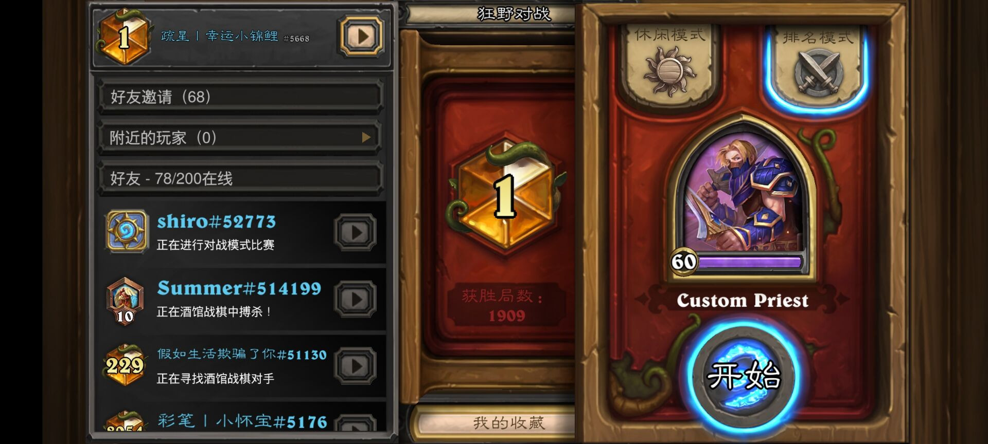 默认宇宙牧,但最近有大哥牧出没,打宇宙牧小劣,打大哥牧小优。起手留空灵刀、魔块857二王。打宇宙牧类似宇宙术,每回合都要续上压力,但是也不用一次性投资太多资源,牧师有尖啸能完美解亡语,安布拉魔块吃857不是制胜点,建议中期直接吃857给少量场面压力,牧师也会很难受。