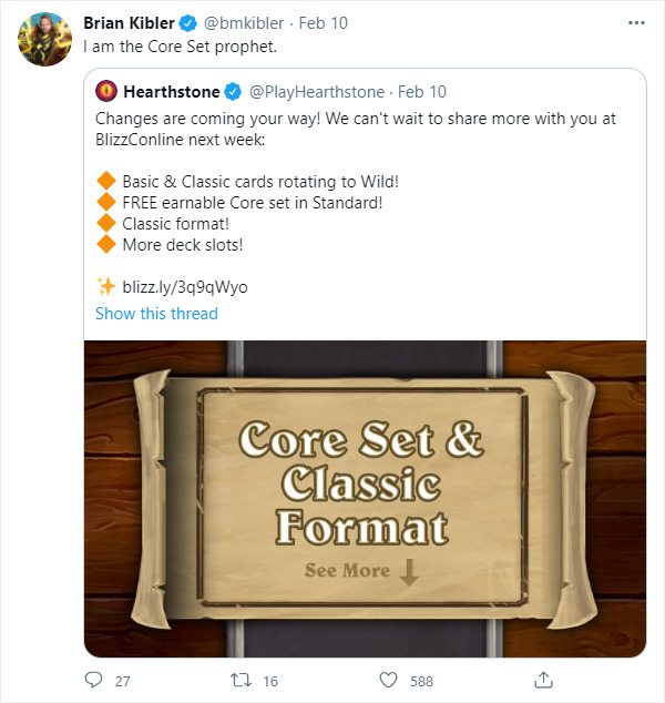 在决定核心系列的构成时,炉石团队向职业选手、主播、内容制作者们征求过意见吗?