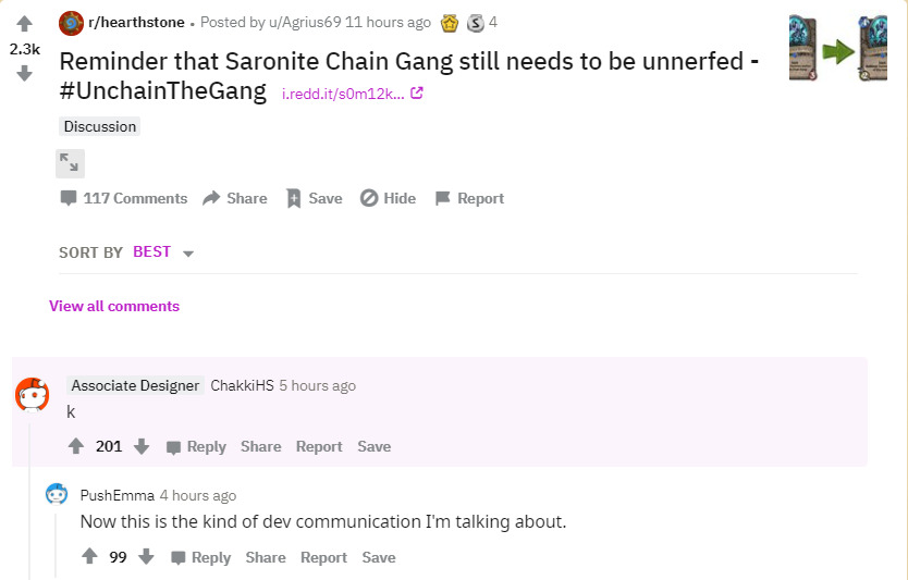 (平衡组设计师Chakki随后还在Reddit的一个求回调萨隆苦囚的帖子下面冒了个泡:)