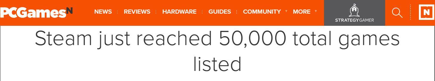 是不是你也好奇这个答案,据外媒pcgamesn报道,Steam游戏平台目前游戏总数目已经超过了5万款。