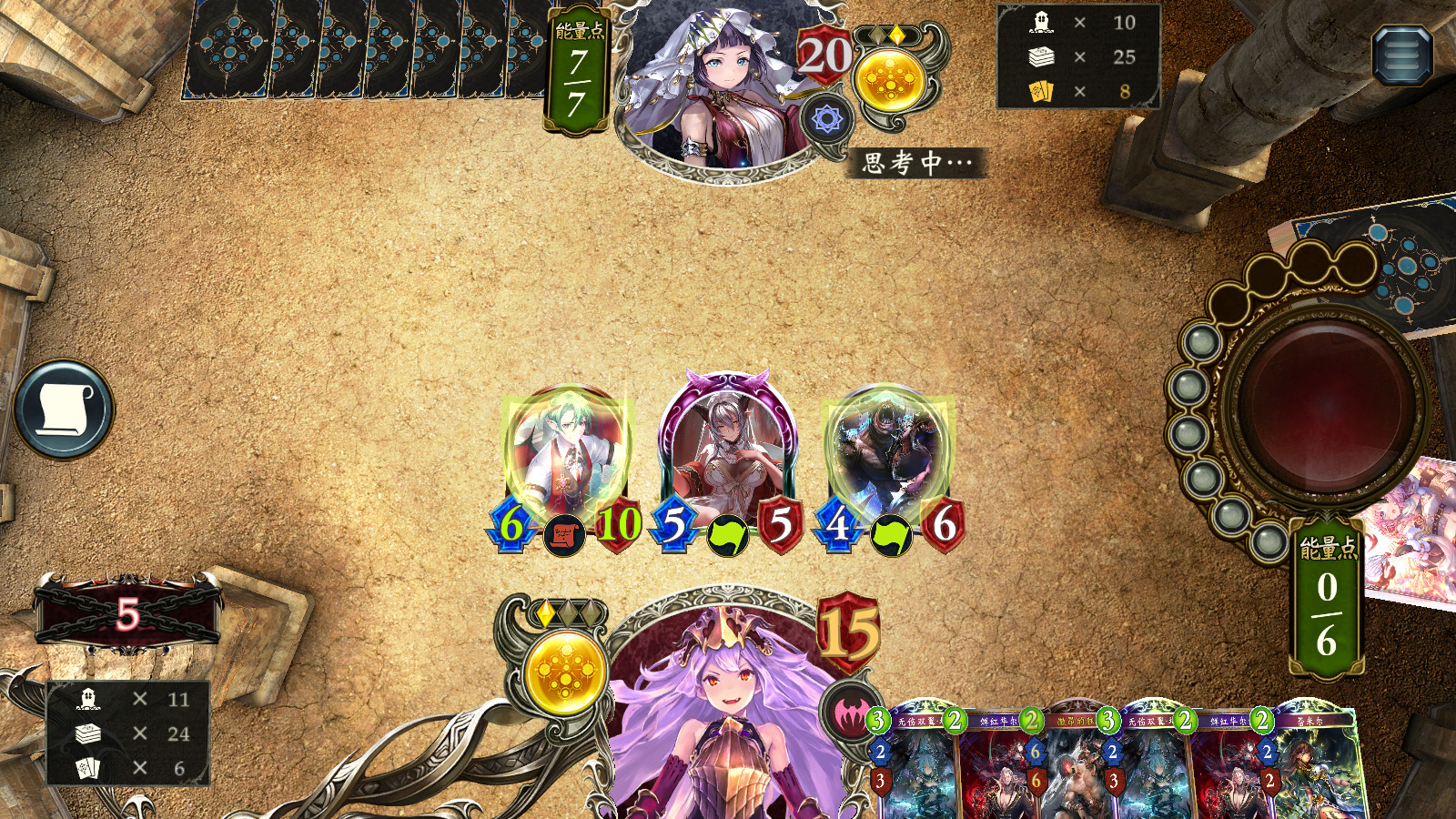 第3回合优先结晶轮盘。手握涅蕾雅的话,优先将密约吸血鬼或梭牌留到第5回合使用,以便触发渴望,但不要因此亏损节奏。