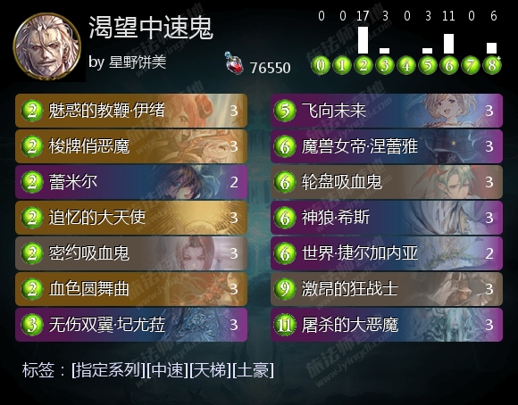 追忆、密约、梭牌、激奏大恶魔等高效过牌组件能将前、中、后期组件衔接起来,是中速鬼流畅展开的关键。因此尽管这套牌只投入了涅蕾雅这一种渴望组件,但我依然愿以渴望(过牌)体系为这一思路冠名。