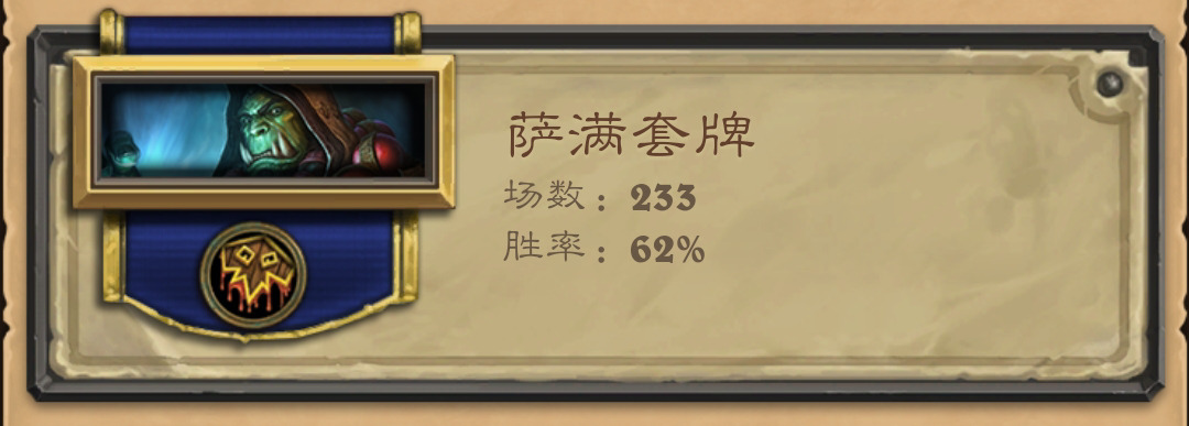 也几乎没遇见过萨满,对局记录上是9战8胜,默认快攻萨,应该是大优对局。印象中只输了一把控制萨,同样对局记录过少,没啥特别好说的,按快攻留牌,一般都能赢吧。