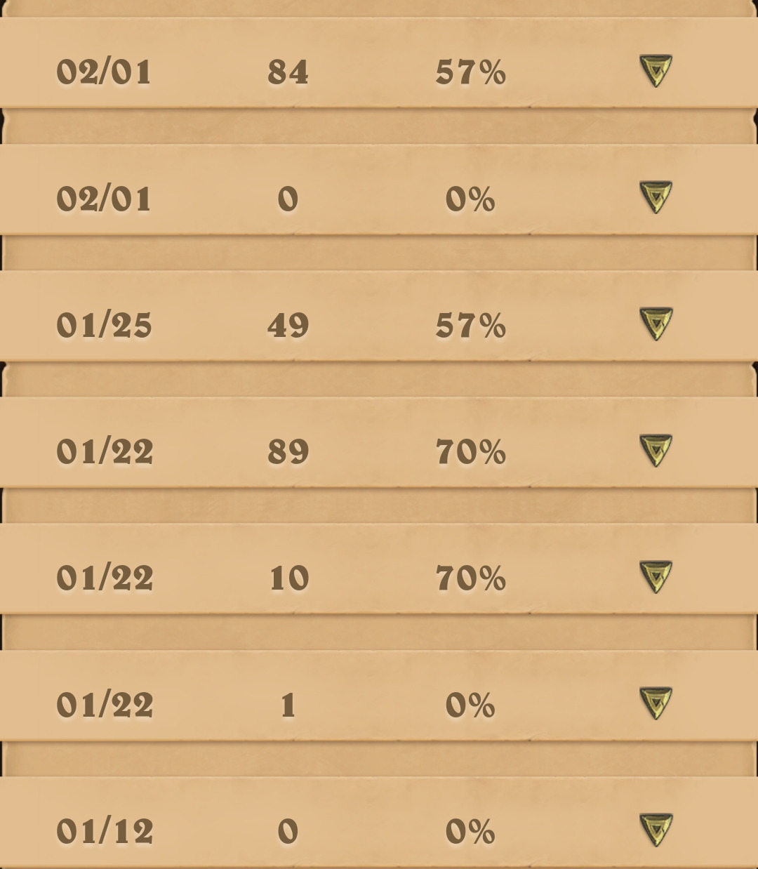 几乎没遇见过猎人,对局记录上是7战7胜,默认T7猎,应该是大优对局。对局记录过少,没啥特别好说的,按快攻留牌,注意防防奥秘就好。