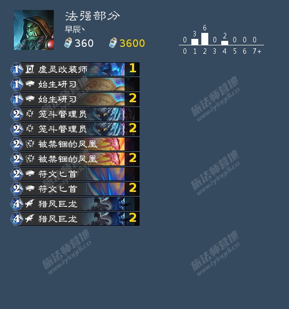本卡组打的是偏快攻+OTK的套路,利用奥术守望者与猎风巨龙两个超模随从,以及法强带来的高额收益,一般6到7费可以斩杀对手,更胡甚至可以5费斩杀。而OTK的存在则是因为新卡凤凰的加入,其休眠机制和法强+2效果,能让我们在2回合后打出高额爆发,4到8费就可以打出十几二十点的斩杀。本卡组同样有着不俗的控场能力,面对能铺的对手,还能打防守反击,我曾试过解掉法术超生德4波满场,让对面羞辱投降,也能轻松通过大地崩陷1卡,直接解掉圣骑士的8-8圣盾。以下放卡组: