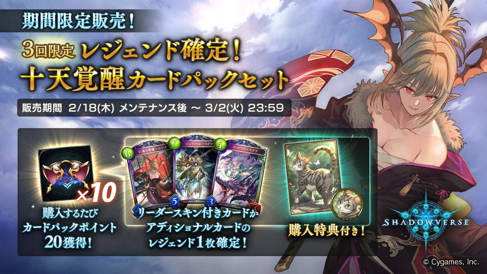 DLC上线后,游戏内将会上架必出虹卡的10包组合,售价1000水晶,最后一张必出虹卡,最多可以购买三次,并且根据购买次数可以获得特典,本次特典为爪岚的猫娘·千的衍生物,年轻自由猫的卡背、头像和闪卡卡背。