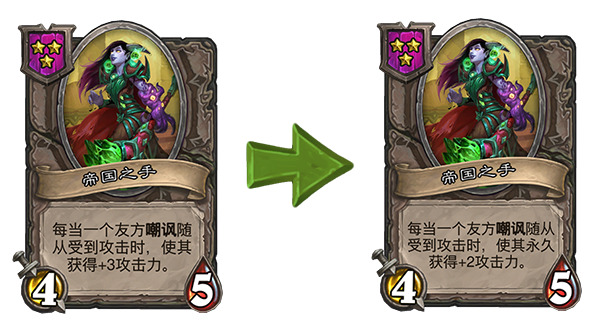 buff效果变为+2攻击力(由+3下调),但改为永久buff