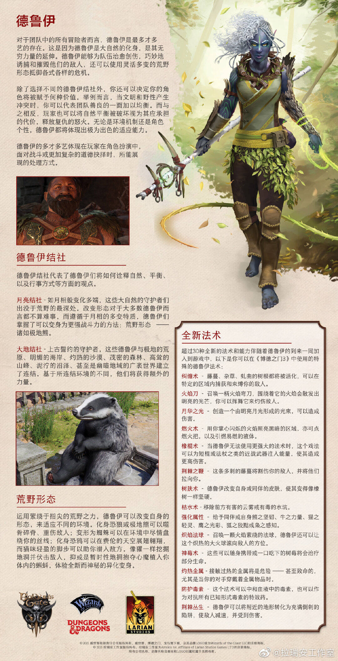 德鲁伊的多才多艺体现在玩家在角色扮演中,面对战斗和更加复杂的道德抉择时,所能展现的处理方式。